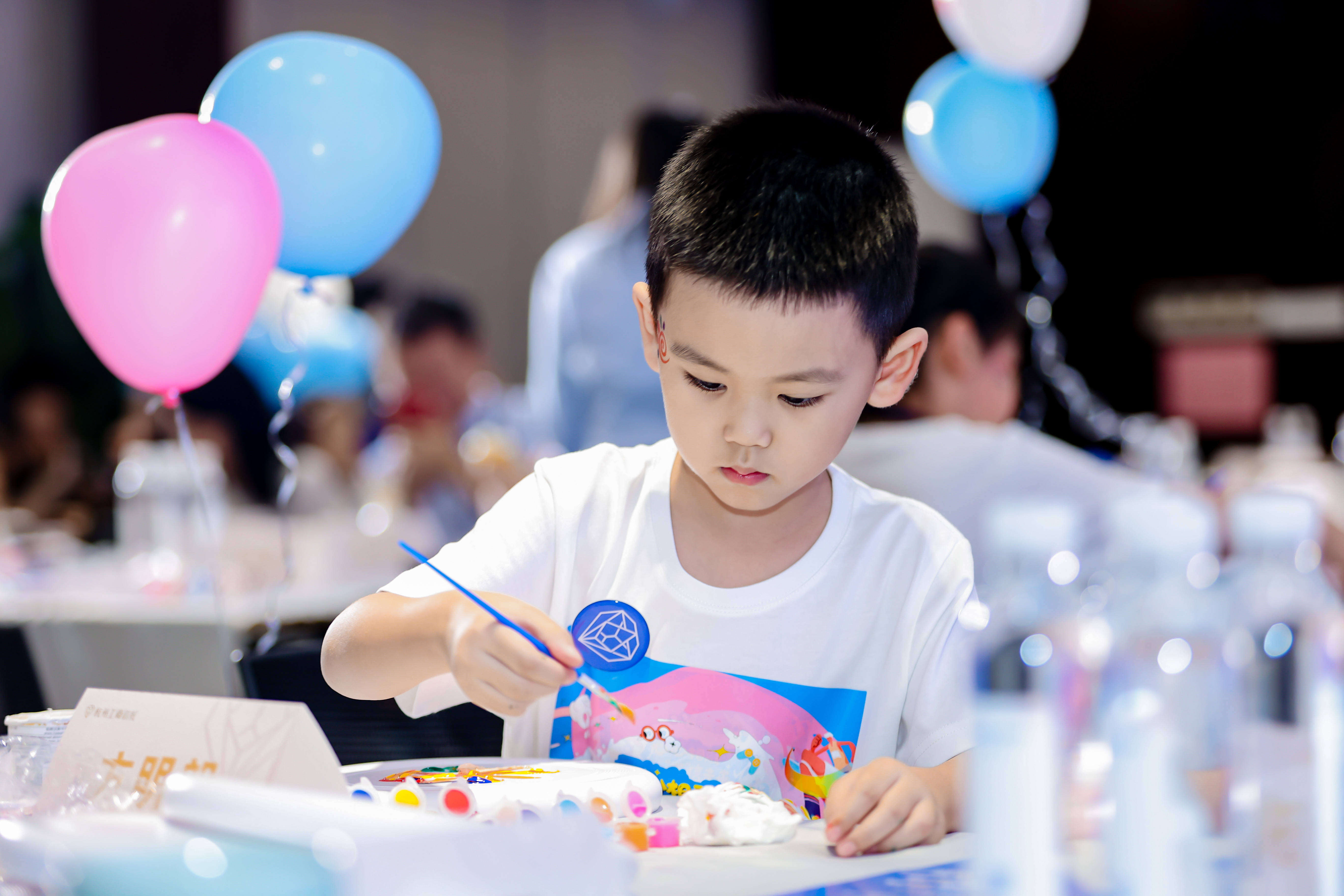 如果童年有顏色,那一定是五彩的。簽到臺前,兒童面部彩繪活動剛剛開始,小朋友們就被各種別致新穎的彩繪圖案迷住了?!安世L師們”根據(jù)小朋友們的喜好和想象力設(shè)計(jì)并彩繪了獨(dú)一無二的圖案,孩子們的臉上綻放著燦爛的笑容,興奮地與爸爸媽媽們拍照留念。